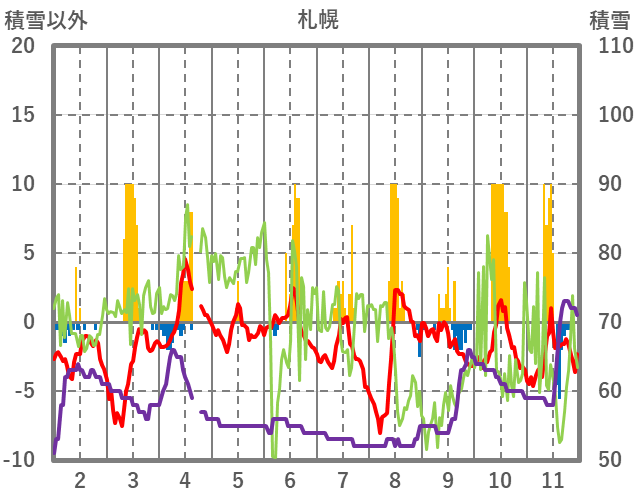 | 日 | 時 | 気温 | 降水 | 風向/風速 | 日照 | 積雪 | 降雪 |