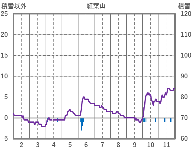 | 日 | 時 | 気温 | 降水 | 風向/風速 | 日照 | 積雪 | 降雪 |