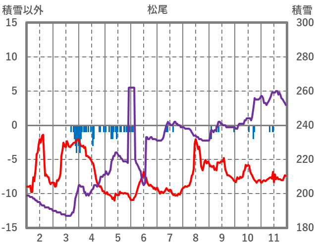 | 日 | 時 | 気温 | 降水 | 風向/風速 | 日照 | 積雪 | 降雪 |