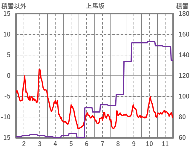 | 日 | 時 | 気温 | 降水 | 風向/風速 | 日照 | 積雪 | 降雪 |
