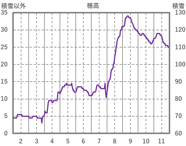 | 日 | 時 | 気温 | 降水 | 風向/風速 | 日照 | 積雪 | 降雪 |