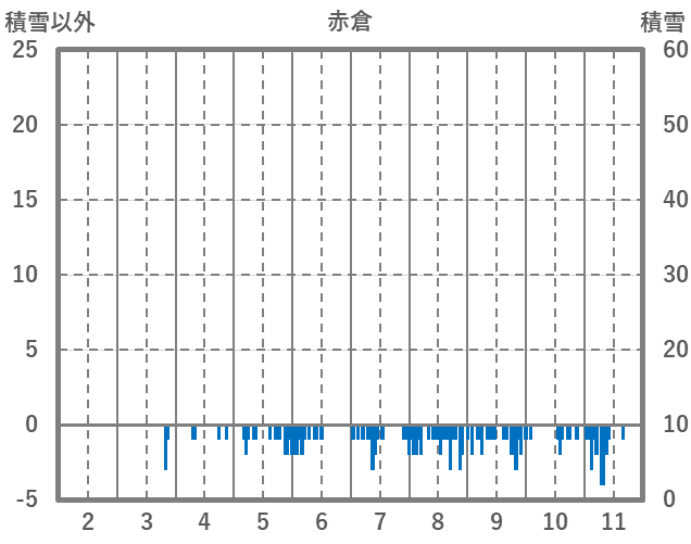 | 日 | 時 | 気温 | 降水 | 風向/風速 | 日照 | 積雪 | 降雪 |