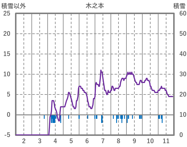 | 日 | 時 | 気温 | 降水 | 風向/風速 | 日照 | 積雪 | 降雪 |
