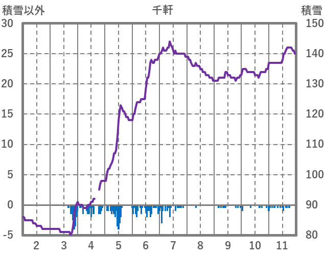 | 日 | 時 | 気温 | 降水 | 風向/風速 | 日照 | 積雪 | 降雪 |