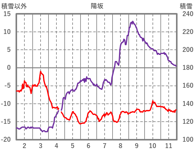 | 日 | 時 | 気温 | 降水 | 風向/風速 | 日照 | 積雪 | 降雪 |