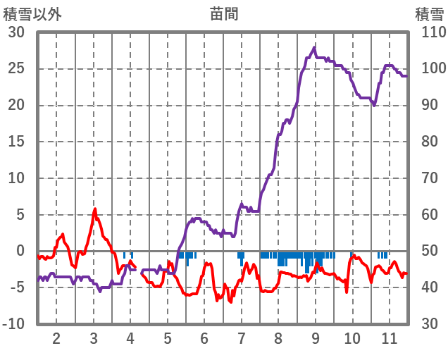 | 日 | 時 | 気温 | 降水 | 風向/風速 | 日照 | 積雪 | 降雪 |