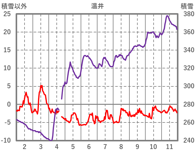 | 日 | 時 | 気温 | 降水 | 風向/風速 | 日照 | 積雪 | 降雪 |