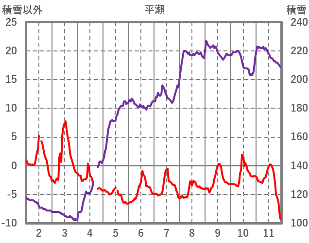 | 日 | 時 | 気温 | 降水 | 風向/風速 | 日照 | 積雪 | 降雪 |