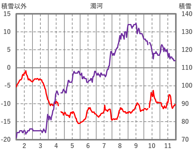 | 日 | 時 | 気温 | 降水 | 風向/風速 | 日照 | 積雪 | 降雪 |