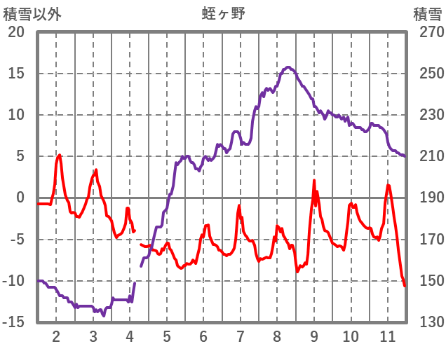 | 日 | 時 | 気温 | 降水 | 風向/風速 | 日照 | 積雪 | 降雪 |