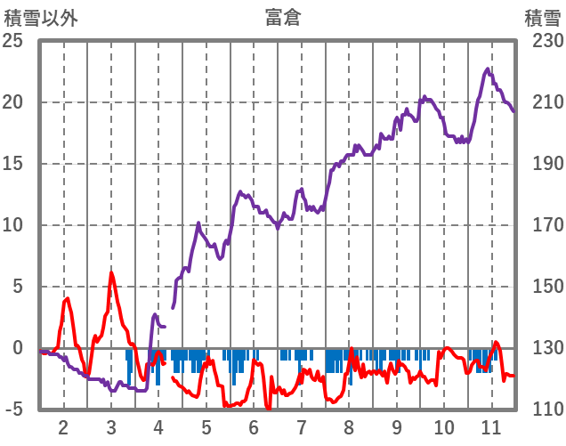 | 日 | 時 | 気温 | 降水 | 風向/風速 | 日照 | 積雪 | 降雪 |
