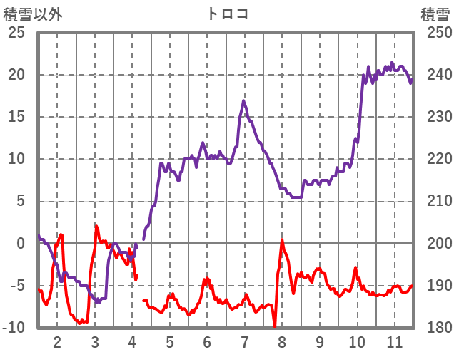 | 日 | 時 | 気温 | 降水 | 風向/風速 | 日照 | 積雪 | 降雪 |