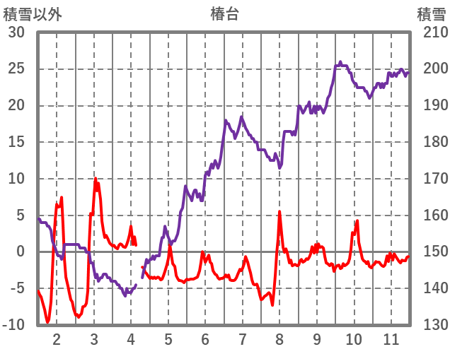 | 日 | 時 | 気温 | 降水 | 風向/風速 | 日照 | 積雪 | 降雪 |