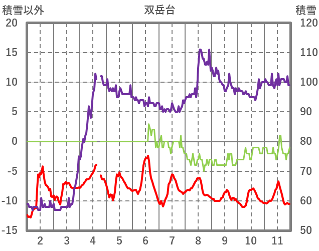 | 日 | 時 | 気温 | 降水 | 風向/風速 | 日照 | 積雪 | 降雪 |