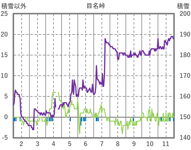 | 日 | 時 | 気温 | 降水 | 風向/風速 | 日照 | 積雪 | 降雪 |