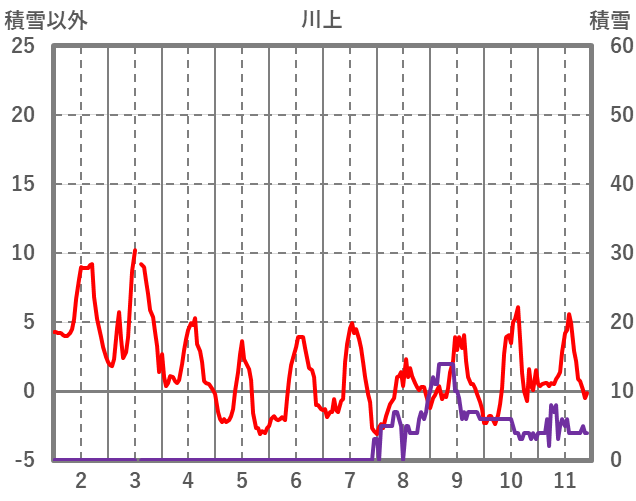 | 日 | 時 | 気温 | 降水 | 風向/風速 | 日照 | 積雪 | 降雪 |