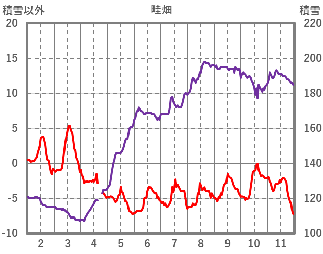 | 日 | 時 | 気温 | 降水 | 風向/風速 | 日照 | 積雪 | 降雪 |