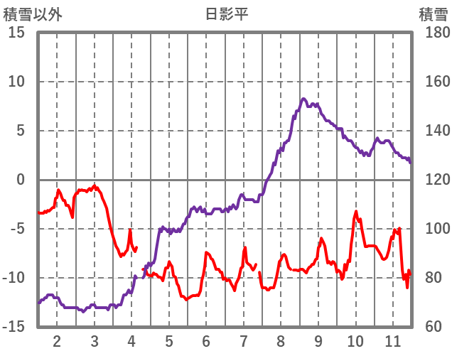 | 日 | 時 | 気温 | 降水 | 風向/風速 | 日照 | 積雪 | 降雪 |