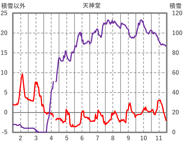 | 日 | 時 | 気温 | 降水 | 風向/風速 | 日照 | 積雪 | 降雪 |