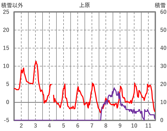 | 日 | 時 | 気温 | 降水 | 風向/風速 | 日照 | 積雪 | 降雪 |