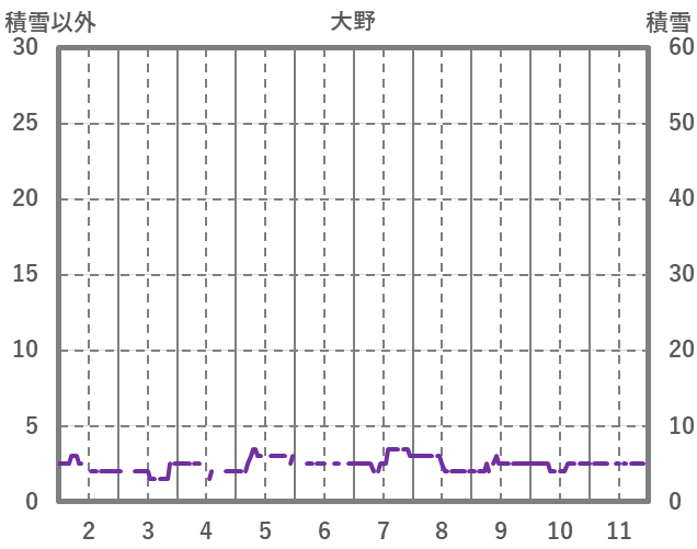 | 日 | 時 | 気温 | 降水 | 風向/風速 | 日照 | 積雪 | 降雪 |