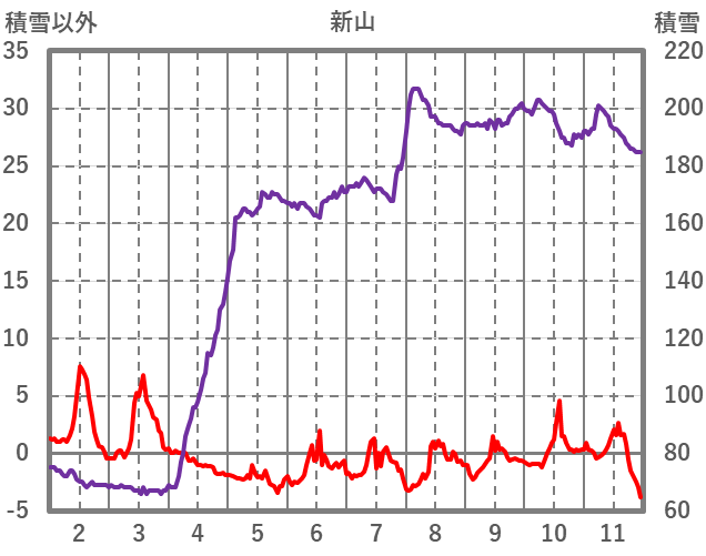 | 日 | 時 | 気温 | 降水 | 風向/風速 | 日照 | 積雪 | 降雪 |