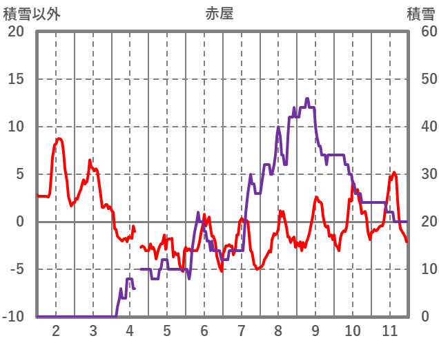 | 日 | 時 | 気温 | 降水 | 風向/風速 | 日照 | 積雪 | 降雪 |