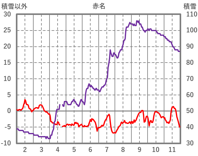 | 日 | 時 | 気温 | 降水 | 風向/風速 | 日照 | 積雪 | 降雪 |