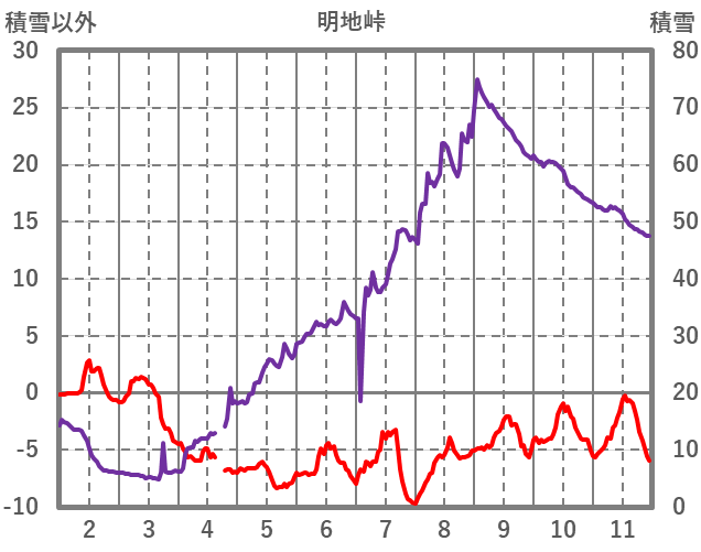 | 日 | 時 | 気温 | 降水 | 風向/風速 | 日照 | 積雪 | 降雪 |