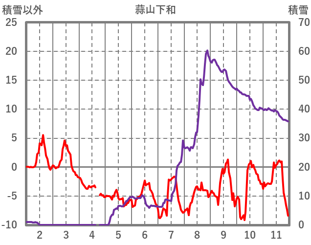 | 日 | 時 | 気温 | 降水 | 風向/風速 | 日照 | 積雪 | 降雪 |