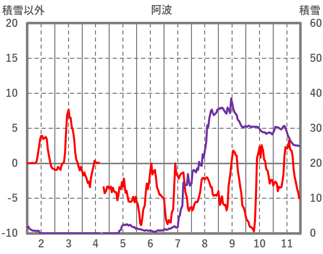 | 日 | 時 | 気温 | 降水 | 風向/風速 | 日照 | 積雪 | 降雪 |