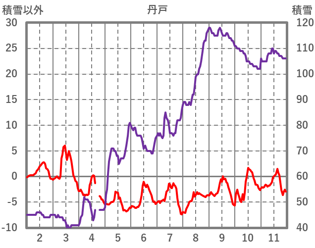 | 日 | 時 | 気温 | 降水 | 風向/風速 | 日照 | 積雪 | 降雪 |
