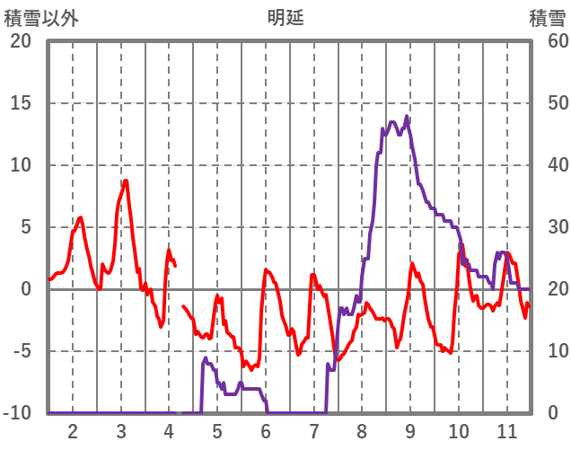 | 日 | 時 | 気温 | 降水 | 風向/風速 | 日照 | 積雪 | 降雪 |
