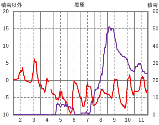 | 日 | 時 | 気温 | 降水 | 風向/風速 | 日照 | 積雪 | 降雪 |