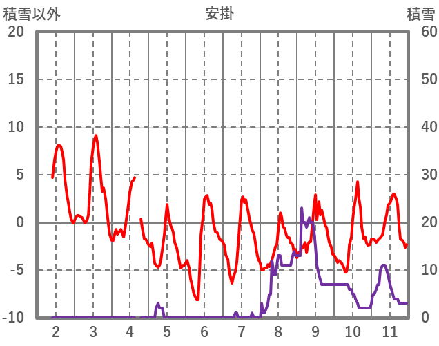 | 日 | 時 | 気温 | 降水 | 風向/風速 | 日照 | 積雪 | 降雪 |