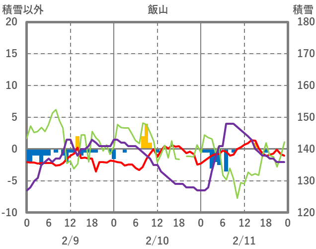 | 日 | 時 | 気温 | 降水 | 風向/風速 | 日照 | 積雪 | 降雪 |