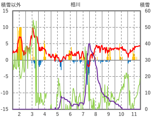 | 日 | 時 | 気温 | 降水 | 風向/風速 | 日照 | 積雪 | 降雪 |