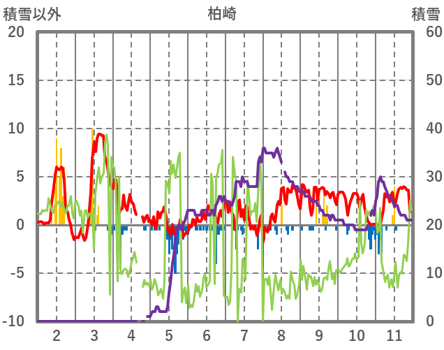 | 日 | 時 | 気温 | 降水 | 風向/風速 | 日照 | 積雪 | 降雪 |