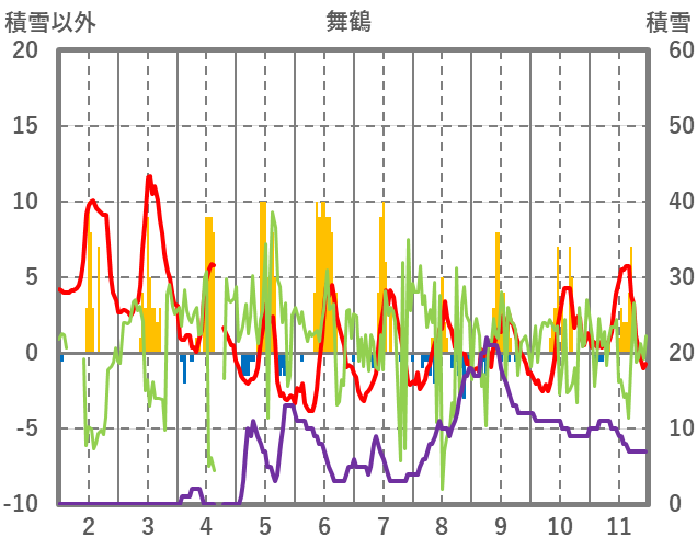 | 日 | 時 | 気温 | 降水 | 風向/風速 | 日照 | 積雪 | 降雪 |