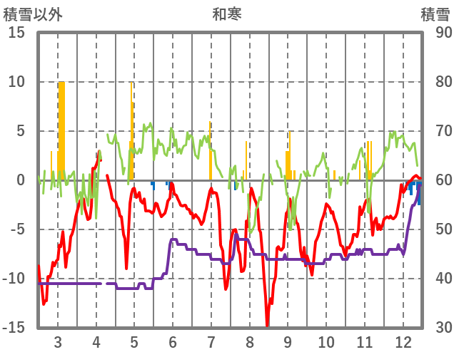 | 日 | 時 | 気温 | 降水 | 風向/風速 | 日照 | 積雪 | 降雪 |