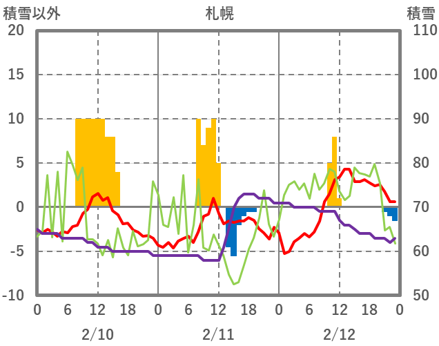 | 日 | 時 | 気温 | 降水 | 風向/風速 | 日照 | 積雪 | 降雪 |