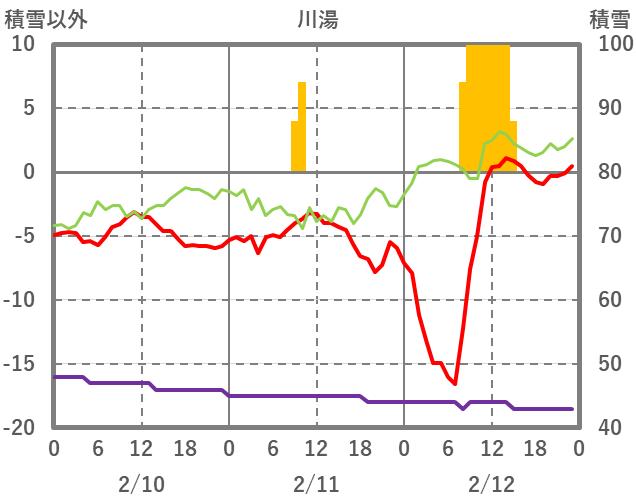 | 日 | 時 | 気温 | 降水 | 風向/風速 | 日照 | 積雪 | 降雪 |