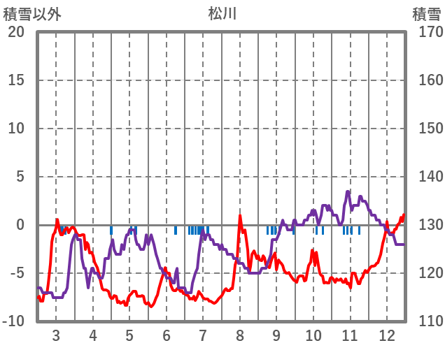 | 日 | 時 | 気温 | 降水 | 風向/風速 | 日照 | 積雪 | 降雪 |