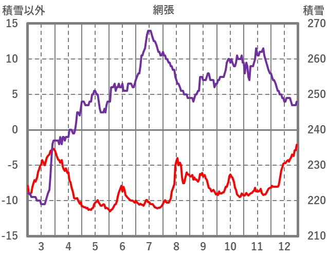 | 日 | 時 | 気温 | 降水 | 風向/風速 | 日照 | 積雪 | 降雪 |