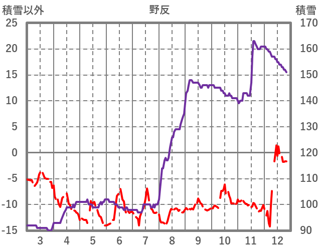 | 日 | 時 | 気温 | 降水 | 風向/風速 | 日照 | 積雪 | 降雪 |