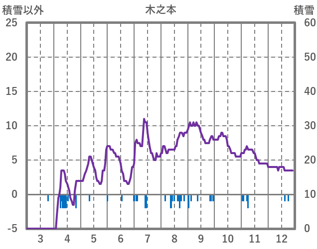 | 日 | 時 | 気温 | 降水 | 風向/風速 | 日照 | 積雪 | 降雪 |
