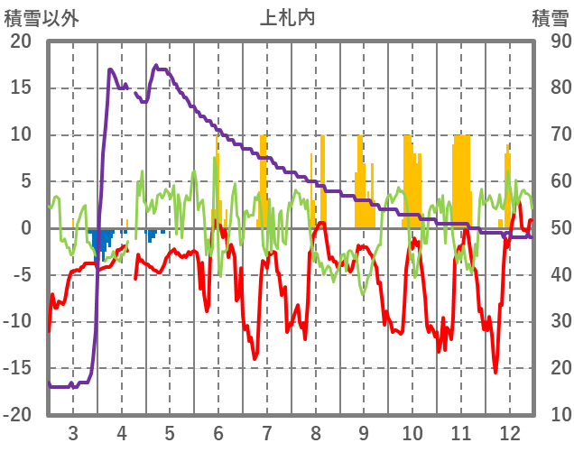 | 日 | 時 | 気温 | 降水 | 風向/風速 | 日照 | 積雪 | 降雪 |