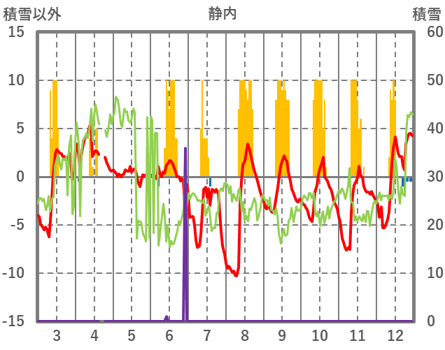 | 日 | 時 | 気温 | 降水 | 風向/風速 | 日照 | 積雪 | 降雪 |
