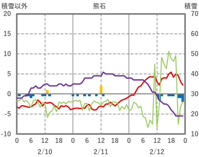 | 日 | 時 | 気温 | 降水 | 風向/風速 | 日照 | 積雪 | 降雪 |