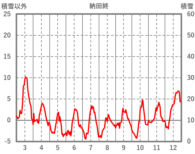 | 日 | 時 | 気温 | 降水 | 風向/風速 | 日照 | 積雪 | 降雪 |